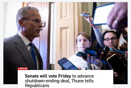 中新網(wǎng)11月7日電 據(jù)美國(guó)政治新聞網(wǎng)站Politico援引知情人士消息,當(dāng)?shù)貢r(shí)間6日,美國(guó)國(guó)會(huì)參議院多數(shù)黨領(lǐng)袖、共和黨人約翰·圖恩透露,他計(jì)劃于7日推動(dòng)一項(xiàng)關(guān)鍵表決,此舉可能為“打破當(dāng)前破紀(jì)錄的政府停擺局面鋪平道路”。