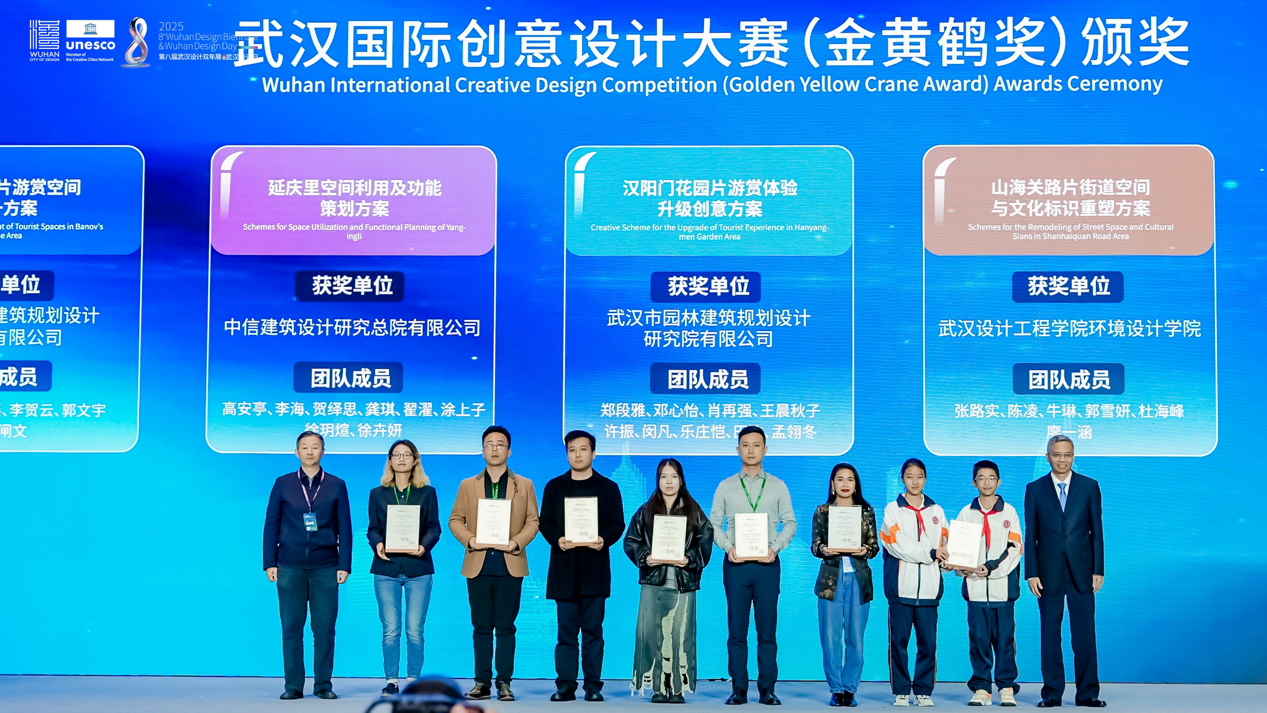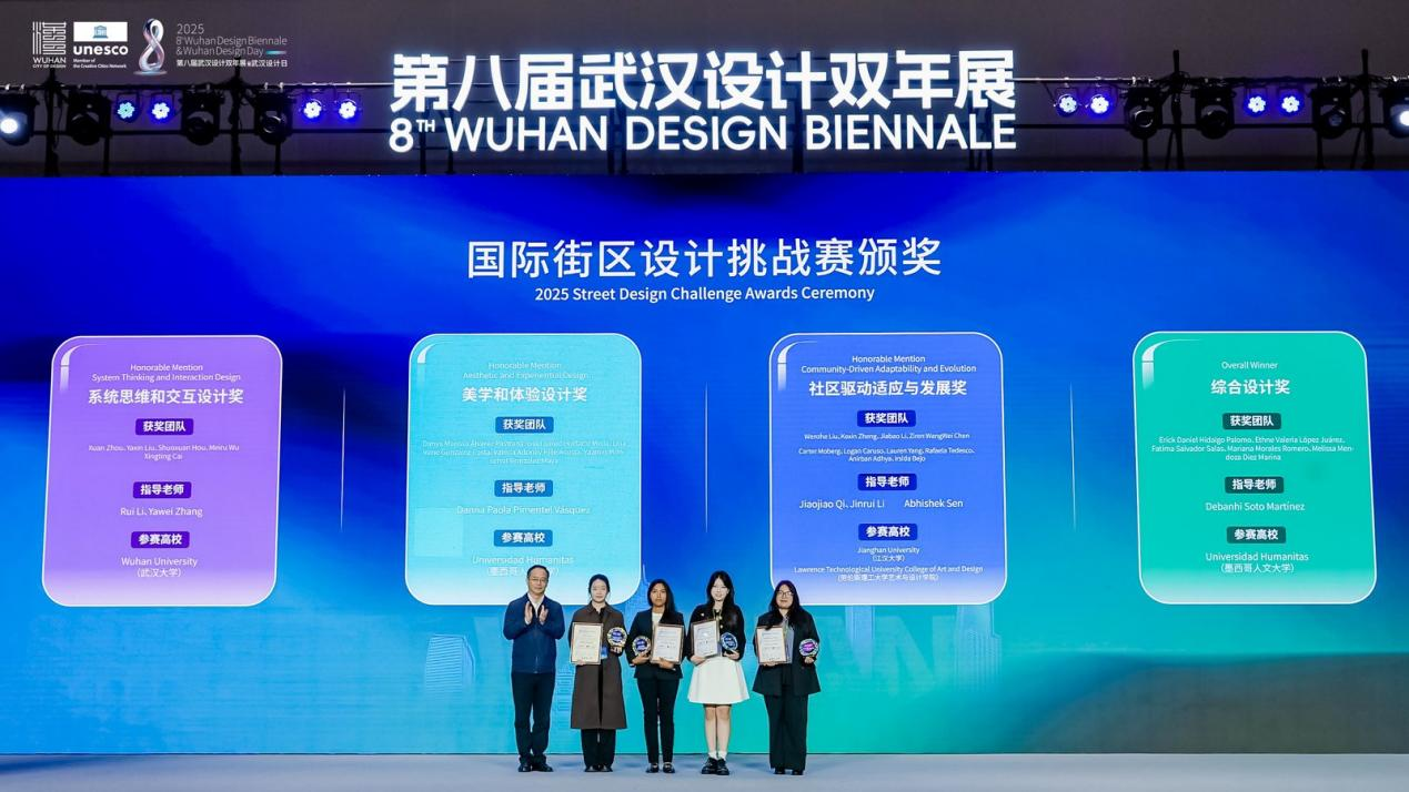 開(kāi)幕式上,2025年武漢國(guó)際創(chuàng)意設(shè)計(jì)大賽(金黃鶴獎(jiǎng))與 2025年國(guó)際街區(qū)挑戰(zhàn)賽頒獎(jiǎng)儀式同步舉行。其中,象征武漢設(shè)計(jì)創(chuàng)新探索的“金黃鶴獎(jiǎng)”,今年特意選取黃鶴樓、山海關(guān)路、漢陽(yáng)門(mén)等市民常去、關(guān)注度高、滿滿煙火氣的城市地標(biāo)作為設(shè)計(jì)對(duì)象,不限專業(yè)和地域,征集更宜人的更新提升方案?,F(xiàn)場(chǎng),武漢瑞拓建筑設(shè)計(jì)咨詢有限公司等6個(gè)專業(yè)組一等獎(jiǎng)和最佳組織獎(jiǎng)武漢市七一華源中學(xué)等獲獎(jiǎng)代表接受頒獎(jiǎng)。國(guó)際街區(qū)挑戰(zhàn)賽,則是由聯(lián)合國(guó)教科文組織設(shè)計(jì)之都城市聯(lián)合舉辦,全球高校團(tuán)隊(duì)共同參與的國(guó)際設(shè)計(jì)賽事。經(jīng)過(guò)全球30位權(quán)威專家1個(gè)月的精心細(xì)致評(píng)審,選出了四個(gè)優(yōu)勝方案。現(xiàn)場(chǎng),為交互設(shè)計(jì)獎(jiǎng)獲獎(jiǎng)團(tuán)隊(duì)武漢大學(xué)、美學(xué)設(shè)計(jì)獎(jiǎng)獲獎(jiǎng)團(tuán)隊(duì)墨西哥人文大學(xué)、社區(qū)發(fā)展獎(jiǎng)獲獎(jiǎng)團(tuán)隊(duì)江漢大學(xué)團(tuán)隊(duì)和美國(guó)勞倫斯理工大學(xué)團(tuán)隊(duì),以及綜合設(shè)計(jì)獎(jiǎng)獲獎(jiǎng)團(tuán)隊(duì)墨西哥人文大學(xué)頒獎(jiǎng)。