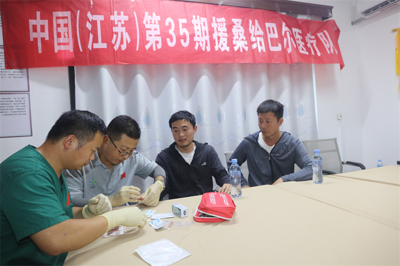 “多虧了中國(guó)醫(yī)療隊(duì),我懸著的心終于放下了!”不久前,一名在桑給巴爾旅游的中國(guó)游客因持續(xù)發(fā)熱,疑似感染瘧疾,緊急向總領(lǐng)館求助。醫(yī)療隊(duì)隊(duì)長(zhǎng)包增濤和瘧疾防治專家劉耀寶接到總領(lǐng)館通知后迅速背起藥箱,穿越石頭城的大街小巷,趕至患者下榻的酒店,現(xiàn)場(chǎng)為其進(jìn)行瘧原蟲(chóng)檢測(cè)、并進(jìn)行了隨訪觀察,針對(duì)其癥狀提供了對(duì)癥治療建議。