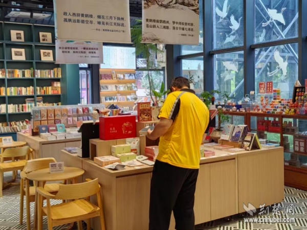 外賣小哥持積分兌換的購(gòu)書券挑選書籍。 通訊員供圖
