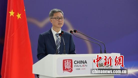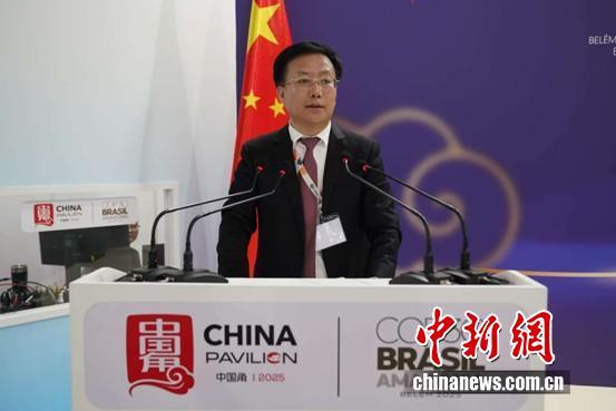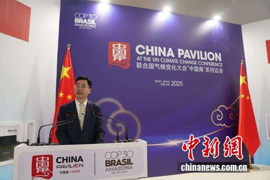 圖為COP30中國代表團(tuán)團(tuán)長 生態(tài)環(huán)境部副部長李高主持邊會(huì)致辭環(huán)節(jié)。中國新聞網(wǎng)記者 林勐男 攝