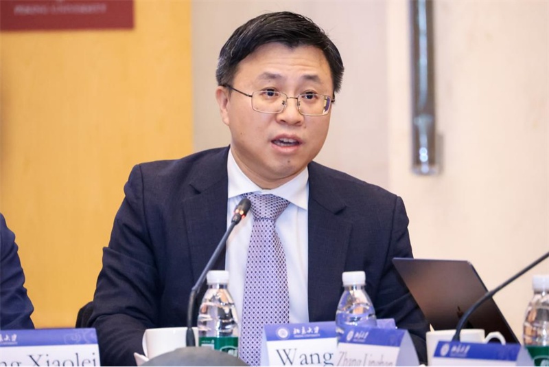 北京大學(xué)國(guó)際關(guān)系學(xué)院教授、社會(huì)科學(xué)部副部長(zhǎng)兼智庫(kù)中心管理辦公室主任、中外人文交流研究基地執(zhí)行主任王棟發(fā)言。主辦方供圖