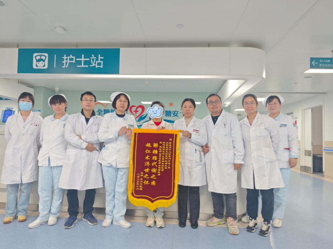 荊楚網(wǎng)(湖北日報網(wǎng))訊(通訊員 周付華)“內(nèi)分泌守護有方,白衣者大愛無疆”“解糖脂代謝之困,施仁術(shù)濟世之懷”。近日,孝感市中心醫(yī)院內(nèi)分泌科II病區(qū)收到兩面紅底金字的錦旗。剛康復(fù)出院的王阿姨(化名)專程送來這份感謝,錦旗上的字跡,既是患者的真誠贊譽,也記錄了一場救治糖尿病重癥并發(fā)癥患者的攻堅過程。