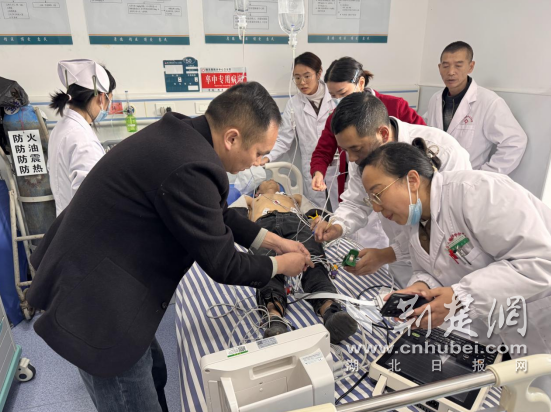 12時(shí)58分,患者病情急劇惡化,突發(fā)呼吸心跳驟停,搶救室氣氛瞬間緊張。鄉(xiāng)中心衛(wèi)生院急救團(tuán)隊(duì)臨危不亂,立即展開心肺復(fù)蘇,并果斷下達(dá)靜脈溶栓(TNK)指令。搶救過程中,患者多次出現(xiàn)致命性室顫,在宣恩縣人民醫(yī)院心內(nèi)科專家的遠(yuǎn)程指導(dǎo)下,急救團(tuán)隊(duì)依據(jù)規(guī)范流程半小時(shí)內(nèi)連續(xù)進(jìn)行多次電除顫,并精準(zhǔn)使用腎上腺素、胺碘酮等高級(jí)生命支持藥物。