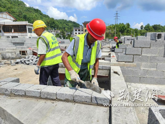 工人師傅在進(jìn)行砌墻施工。通訊員供圖