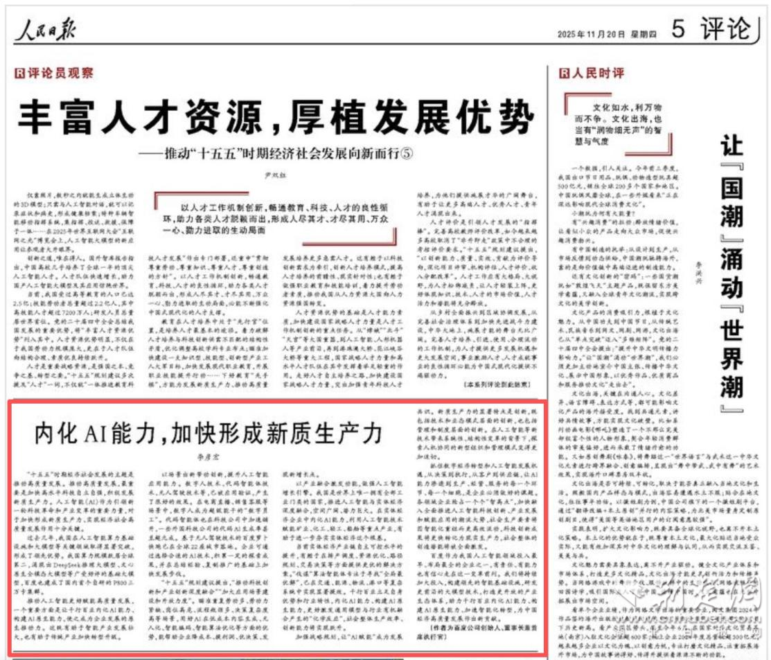 荊楚網(wǎng)(湖北日報網(wǎng))訊(通訊員 杜軒)11月20日,百度創(chuàng)始人、董事長兼首席執(zhí)行官李彥宏在《人民日報》發(fā)表題為《內化AI能力,加快形成新質生產力》的署名文章。他指出,推動人工智能更好賦能高質量發(fā)展,一個重要方面是讓千行百業(yè)內化AI能力,構建AI原生能力,使之成為企業(yè)發(fā)展的原生推動力。