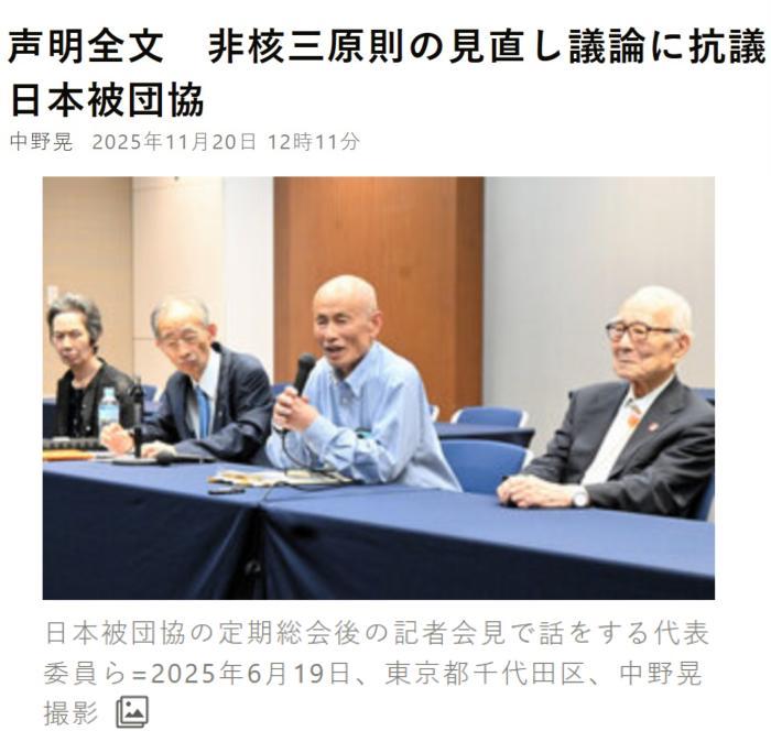 中新網(wǎng)11月20日電 據(jù)日本《朝日新聞》報(bào)道,當(dāng)?shù)貢r間20日,日本原子彈氫彈爆炸受害者團(tuán)體協(xié)議會就日本首相高市早苗考慮修改“無核三原則”一事發(fā)表致高市的聲明,稱“這將顛覆迄今為止的政府見解,強(qiáng)烈抗議開啟修改‘三原則’的討論”。