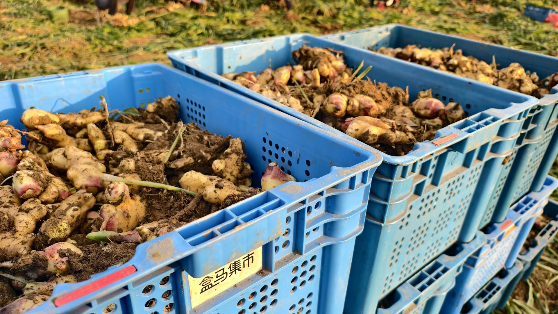 “我家在紅寨村,騎車過(guò)來(lái)10分鐘,一天能掙100塊錢,還不耽誤照顧老人孩子?!闭诜謷拇迕穸」鹈愤呎f(shuō)邊利落地將姜塊裝筐。