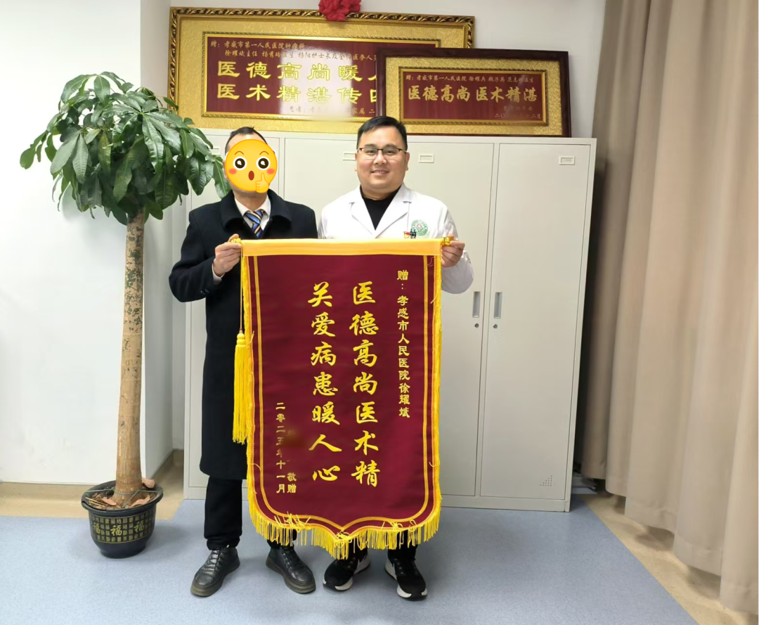 荊楚網(wǎng)(湖北日報網(wǎng))訊(通訊員 王梅)近日,孝感市第一人民醫(yī)院腫瘤科內(nèi)暖意融融,患者楊先生將一面繡有“醫(yī)德高尚醫(yī)術(shù)精,關(guān)愛病患暖人心”的鮮紅錦旗,鄭重地送到腫瘤科副主任徐耀斌手中。這面錦旗,不僅承載著楊先生對徐耀斌的由衷感激,更見證了醫(yī)患之間的深厚情誼。