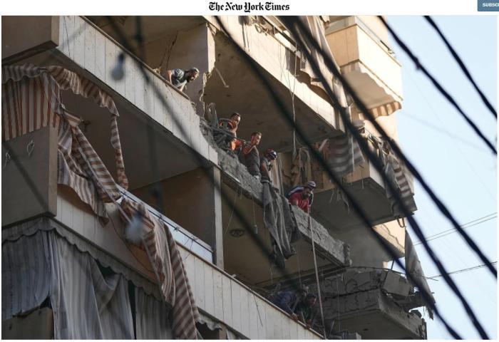 塔巴塔拜公寓遭空襲現(xiàn)場(chǎng)。圖/《紐約時(shí)報(bào)》