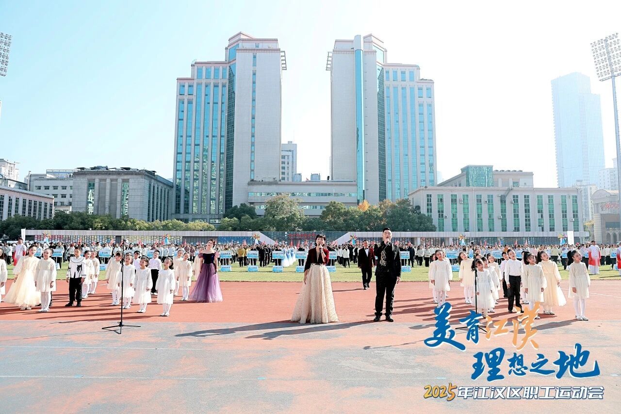 文藝演出環(huán)節(jié)同樣精彩紛呈。開場舞《美麗中國》以熱情舞步禮贊祖國;體育舞蹈《躍動未來》上演力量與美的碰撞;《活力江漢》歌曲串燒中,小歌手彭彥凱與武漢天使童聲合唱團帶來動人演唱,職工歌手聯(lián)袂獻唱《江漢四季》《相親相愛》,引發(fā)全場共鳴;千人工間操展演氣勢恢宏,全場配合呈現(xiàn)“I?JH”巨型畫面,將開幕式推向高潮。