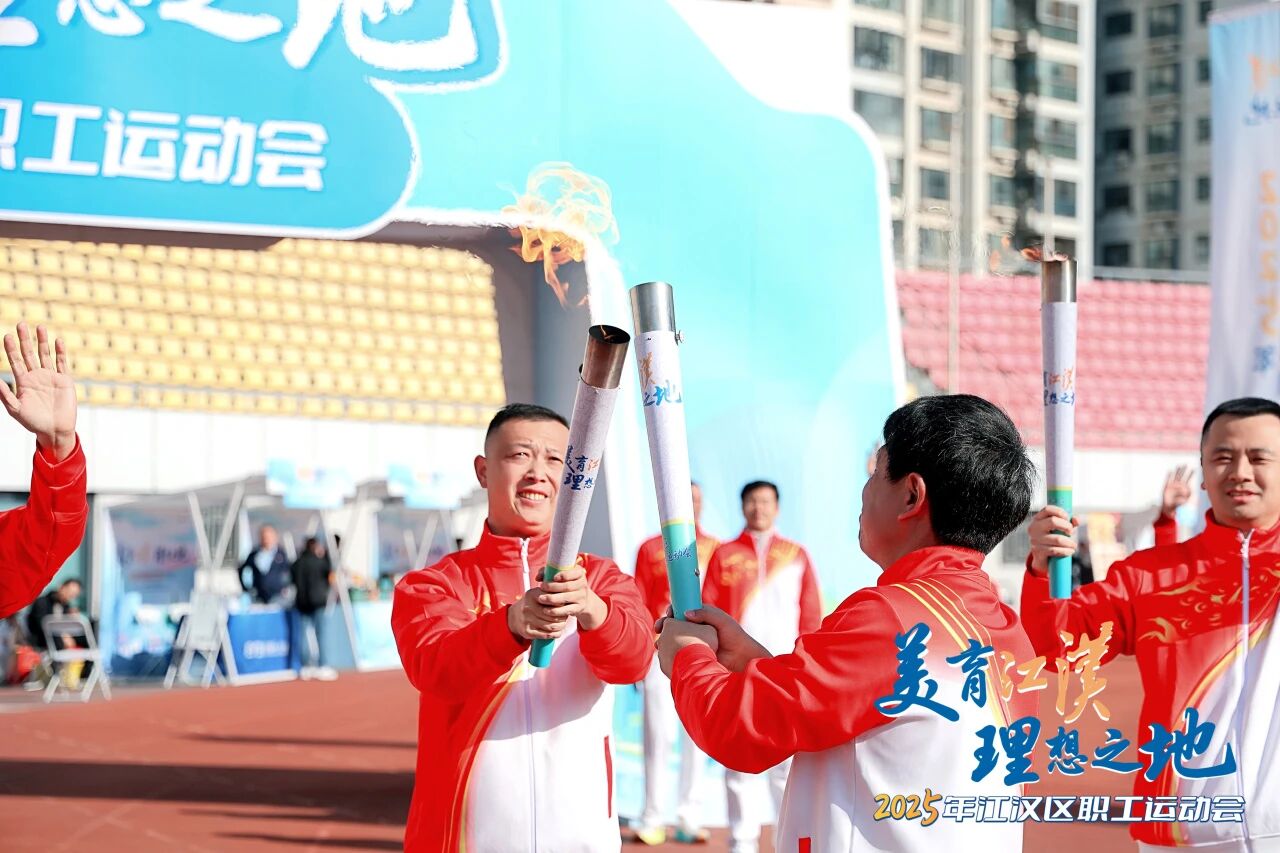 現(xiàn)場,“新興之火”“數(shù)智之火”“金融之火”“樞紐之火”“人文之火”五棒火炬依次點亮,張裕、付俊、邵青、張寶劍、孟廣松等15位勞模代表接力傳遞。燃燒的火焰,照耀著江漢區(qū)在科技創(chuàng)新、數(shù)字化轉(zhuǎn)型、金融強區(qū)、商貿(mào)物流、文商體旅融合等發(fā)展領(lǐng)域堅定向前。當所有火炬手共同點燃主圣火盆,彩球騰空,全場沸騰,運動會正式開幕。