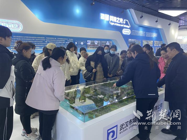 走進(jìn)北湖污水處理廠,現(xiàn)代化設(shè)施井然有序。水流穿管而過,光伏板鋪展在廠區(qū)上方。廠黨支部副書記夏可向?qū)W員們介紹了項(xiàng)目建設(shè)與運(yùn)營情況。這一工程是武漢“四水共治”和“長江大保護(hù)”的重要支點(diǎn),具備日處理80萬噸污水、服務(wù)超過240萬人的能力。通過“光伏+水務(wù)”“污水再生利用”等模式,北湖廠展示了生態(tài)文明建設(shè)的創(chuàng)新路徑。