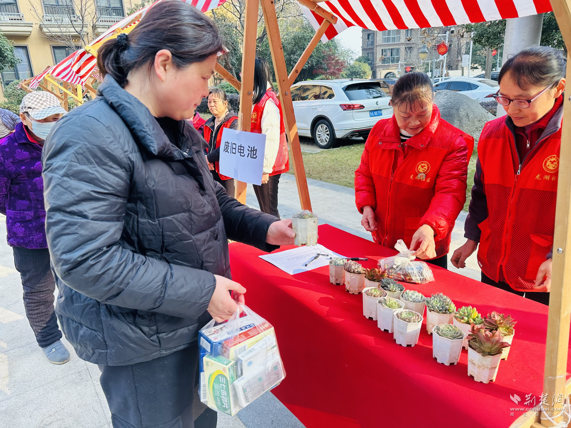 活動(dòng)現(xiàn)場(chǎng),社區(qū)工作人員與共建單位志愿者提前布置好兌換區(qū),多肉、綠蘿、長(zhǎng)壽花等綠植鮮嫩欲滴,垃圾袋、抹布等日用品擺放整齊,吸引了不少居民駐足咨詢?!凹依飻€了不少?gòu)U舊電池,一直不知道怎么處理,今天終于派上用場(chǎng)了!”居民張阿姨提著一袋子舊電池來(lái)到兌換點(diǎn),經(jīng)過(guò)志愿者清點(diǎn)登記后,順利換得一盆長(zhǎng)勢(shì)喜人的綠蘿。