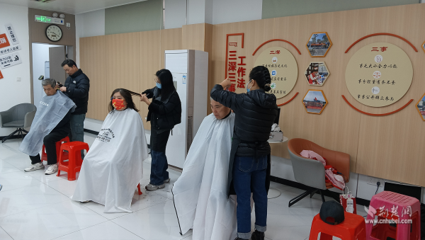 活動(dòng)最后是便民服務(wù)環(huán)節(jié)。社區(qū)對(duì)接武昌“新興學(xué)院”天姿美容美發(fā)學(xué)校資源開展義務(wù)理發(fā)服務(wù)。志愿者們提前布置好服務(wù)區(qū),認(rèn)真做好工具消毒,隨后耐心詢問(wèn)每一位前來(lái)理發(fā)的流動(dòng)黨員和老年人的需求,憑借嫻熟技藝為大家精心修剪發(fā)型?!安怀錾鐓^(qū)就能享受到這么好的服務(wù),還能和黨員同志們一起學(xué)習(xí)交流,心里特別暖?!币晃粍偫硗臧l(fā)的老人滿意地說(shuō)道。現(xiàn)場(chǎng)洋溢著濃濃的鄰里溫情。