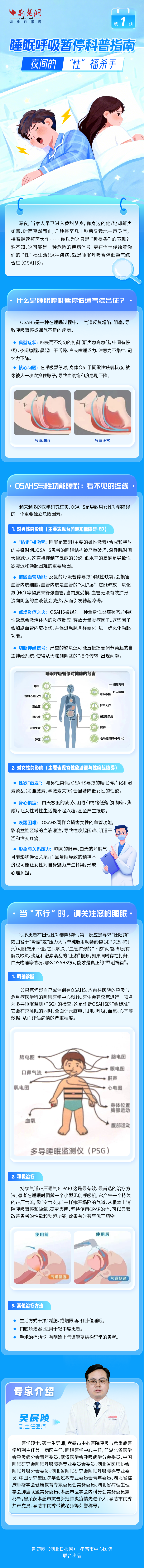 深夜,當家人早已進入香甜夢鄉(xiāng),你身邊的TA卻鼾聲如雷,時而夏然而止,幾秒甚至幾十秒后又猛地一聲吸氣,接著繼續(xù)鼾聲大作……你以為這只是"睡得香"的表現(xiàn)?殊不知,這可能是一種危險的疾病信號,更在悄悄侵蝕著你們的“性”福生活!這種疾病,就是睡惺惺呼吸暫停低通氣綜合征(OSAHS)。