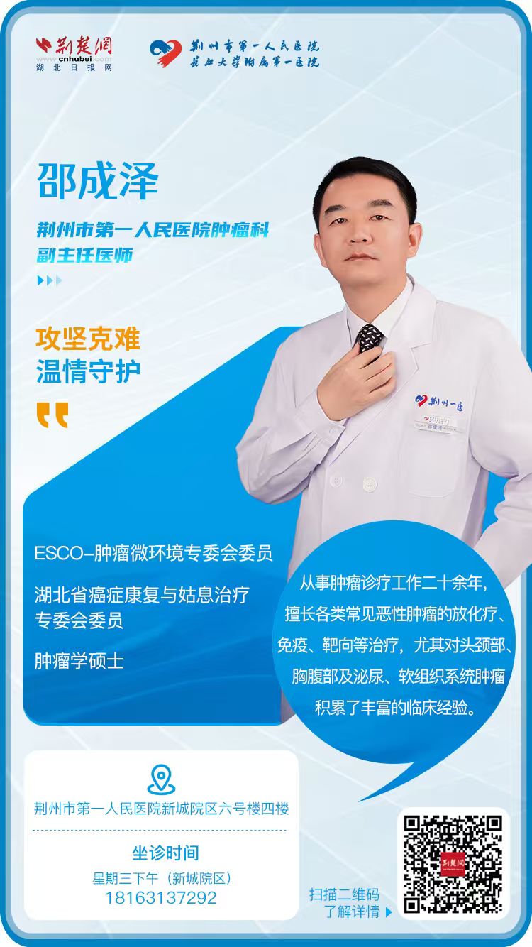 邵成澤:副主任醫(yī)師,ESCO-腫瘤微環(huán)境專委會委員,湖北省癌癥康復與姑息治療專委會委員,腫瘤學碩士,從事腫瘤診療工作二十余年。