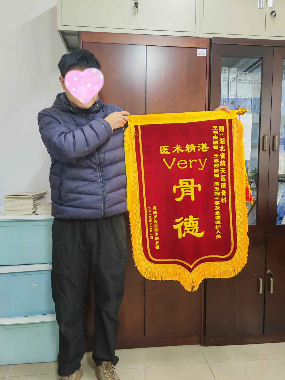 后來,一面特別的錦旗送到了湖北航天醫(yī)院骨科。紅絲絨的旗面上,巧妙繡著“Very 骨德”四個字。年輕的父親笑著說:“諧音‘very good’。孩子在這里出生,也在這里被治愈,我們放心,更感激?!?/p>