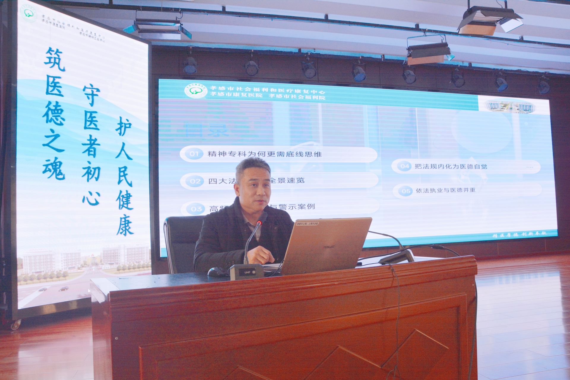 荊楚網(wǎng)(湖北日報網(wǎng))訊(通訊員 周?。槌掷m(xù)貫徹落實孝感市衛(wèi)生健康委員會《關(guān)于組織開展全市“醫(yī)德醫(yī)風(fēng)學(xué)習(xí)月”通知》文件精神,推動醫(yī)德醫(yī)風(fēng)建設(shè)走深走實,12月16日下午,孝感市市社會福利和醫(yī)療康復(fù)中心(以下簡稱“中心”)在門診六樓大會議室舉行“醫(yī)德醫(yī)風(fēng)學(xué)習(xí)月”第二次專題培訓(xùn),“中心”領(lǐng)導(dǎo)班子成員及全體干部職工參加了培訓(xùn)。