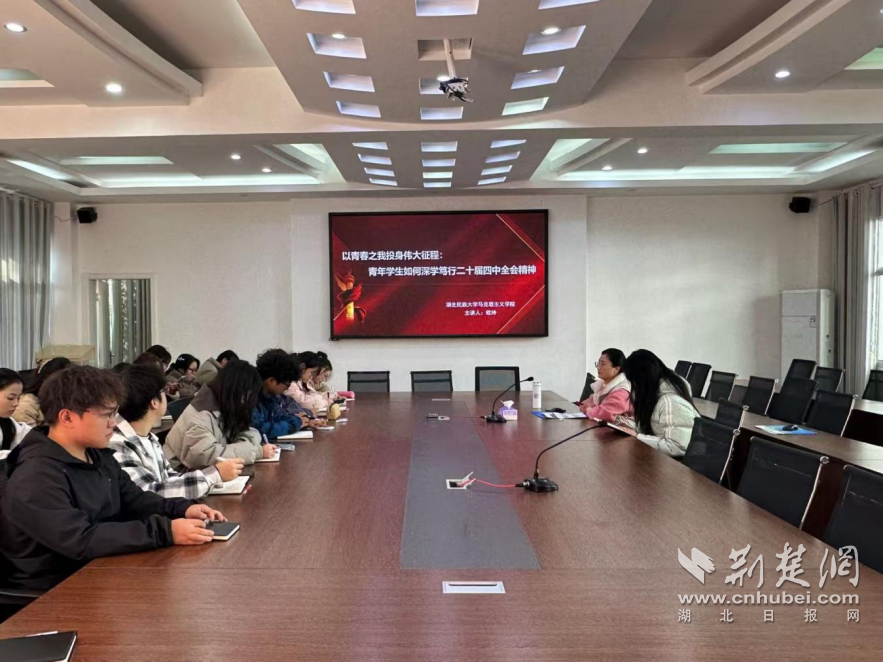 11月27日,恩施州青年宣講團(tuán)成員、湖北民族大學(xué)馬克思主義學(xué)院講師歐玲,以“以青春之我投身偉大征程”為題,為學(xué)校第六期“青年馬克思主義者培養(yǎng)工程”培訓(xùn)班學(xué)員作了學(xué)習(xí)貫徹黨的二十屆四中全會精神專題宣講,引導(dǎo)青馬學(xué)員深學(xué)篤行黨的二十屆四中全會精神,主動參與到“挑戰(zhàn)杯”“三下鄉(xiāng)”等大學(xué)生社會實(shí)踐活動,擔(dān)起時代責(zé)任。