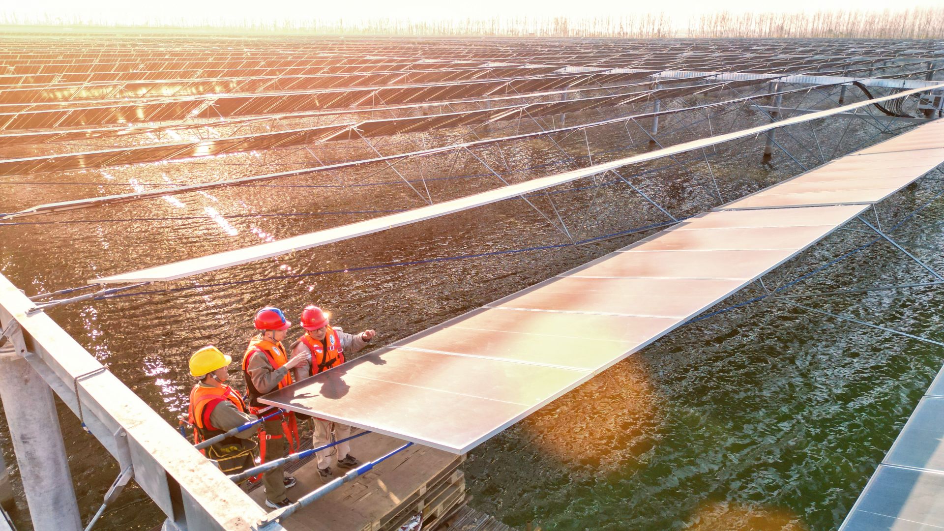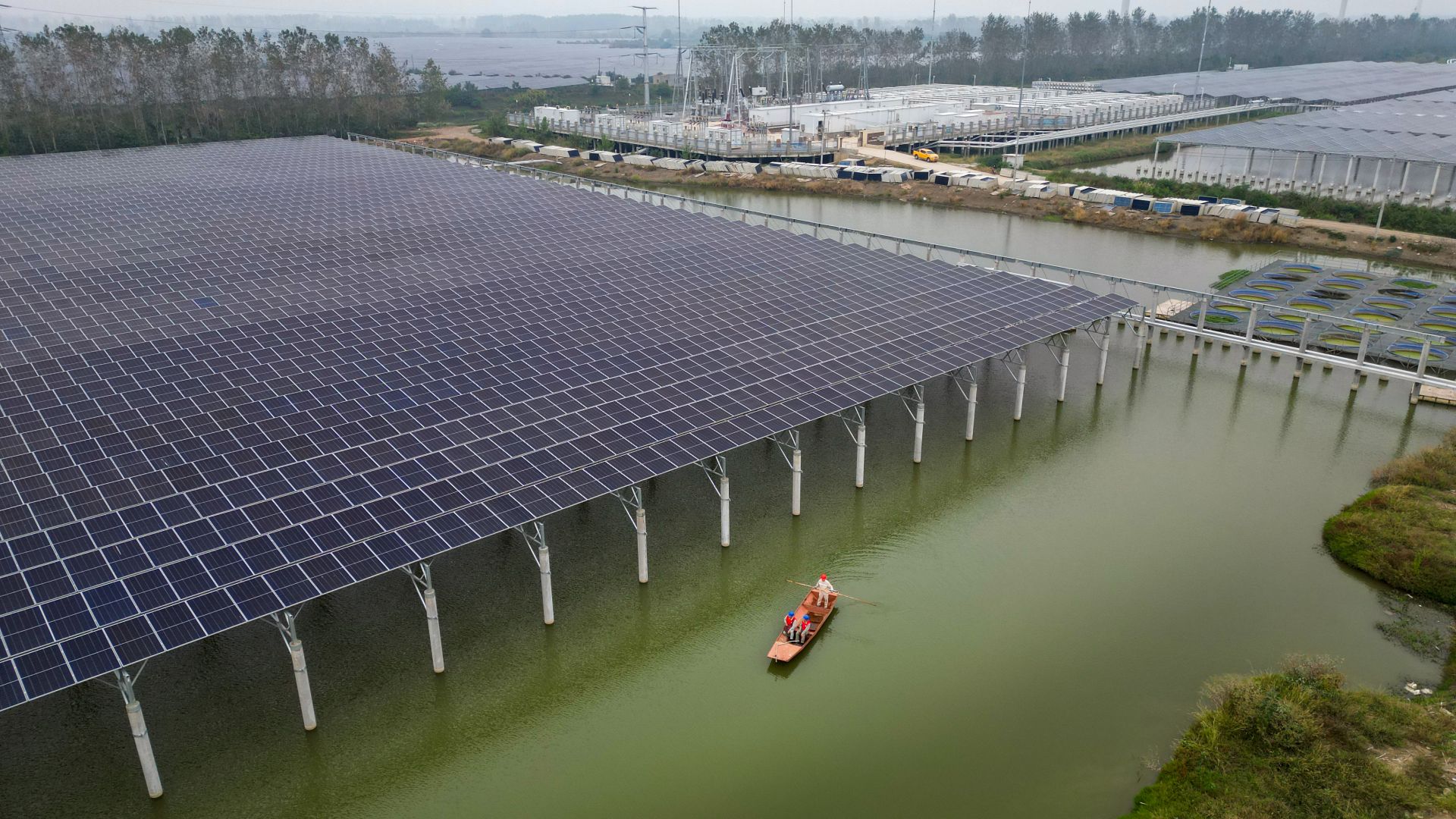 在不遠(yuǎn)處的沉湖漁光互補(bǔ)基地,光伏板下波光粼粼,魚兒肥美。承包戶葛師傅將迎來豐收:“光伏板上發(fā)電,板下養(yǎng)魚,效益高還環(huán)保……”