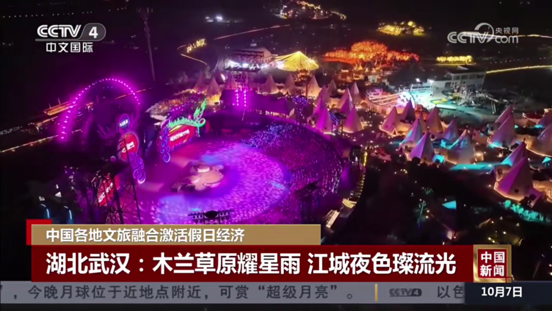 10月7日:CCTV-4《中國新聞》聚焦報道黃陂木蘭草原文旅融合激活假日經(jīng)濟:木蘭草原耀星雨,江城夜色璨流光。