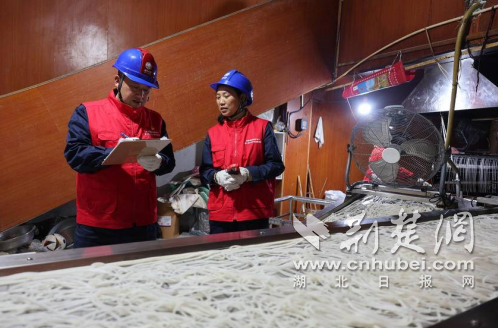 當(dāng)日,國家電網(wǎng)湖北電力(恩施市營銷)楚天星火共產(chǎn)黨員服務(wù)隊(duì)隊(duì)員夏輝、黃輝、吳勛鳳穿梭在電氣化車間,指尖撫過線路、目光檢視儀表,在這煙火升騰的歲首,默默守護(hù)著侗鄉(xiāng)人們傳承百年的味覺記憶。