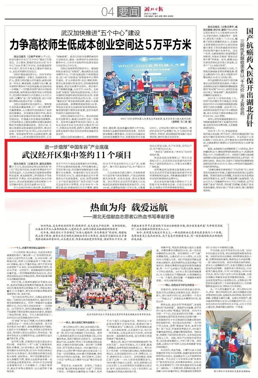 1月5日,湖北日報要聞版報道:進一步增厚“中國車谷”產業(yè)底蘊 武漢經開區(qū)集中簽約11個項目