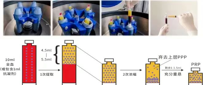 ①通過抽取患者自體血液,利用離心機(jī)分層后人工提取PRP。