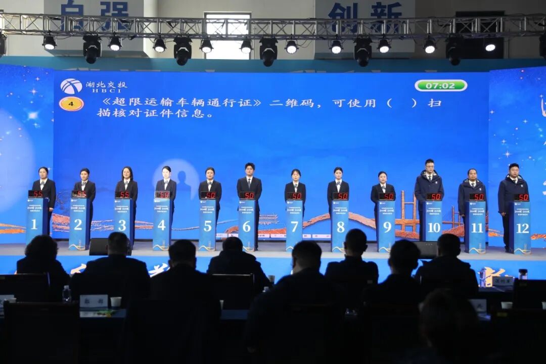“江漢之星”評(píng)選環(huán)節(jié)由12名入圍選手共同參與,通過同臺(tái)答題、技能比拼、才藝競秀三大環(huán)節(jié)角逐榮耀。現(xiàn)場答題環(huán)節(jié)緊張激烈,題庫涵蓋收費(fèi)政策、安全應(yīng)急、路網(wǎng)知識(shí)等核心內(nèi)容,選手們沉著應(yīng)對(duì)、對(duì)答如流,充分展現(xiàn)了扎實(shí)的專業(yè)功底。崗位實(shí)操環(huán)節(jié)圍繞模擬收費(fèi)特情操作、工單處置、機(jī)電應(yīng)急處理三大板塊進(jìn)行集中評(píng)定,精湛技藝贏得現(xiàn)場陣陣掌聲。服務(wù)展示環(huán)節(jié)由選手結(jié)對(duì)演繹舞臺(tái)劇《荊美江漢群英譜》,將禮儀規(guī)范與人文關(guān)懷深度融合,傳遞了“以匠心守初心,以服務(wù)暖民心” 的責(zé)任擔(dān)當(dāng)。