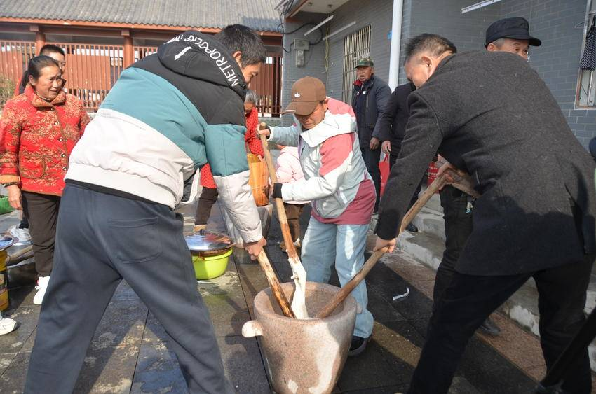 舞臺(tái)一側(cè)是“彭店好物”農(nóng)產(chǎn)品展銷臺(tái),彭店鄉(xiāng)的大米、生態(tài)禽蛋、手工粉絲、花生等特色農(nóng)產(chǎn)品琳瑯滿目,人頭攢動(dòng),大家紛紛選購(gòu)自己喜歡的年貨,最吸引的人是游客與村民一起打糍粑,品嘗自己親手打出來(lái)的糍粑,體驗(yàn)鄉(xiāng)村濃濃的年味,一場(chǎng)文旅盛宴帶動(dòng)彭店土特產(chǎn)品出圈出村。