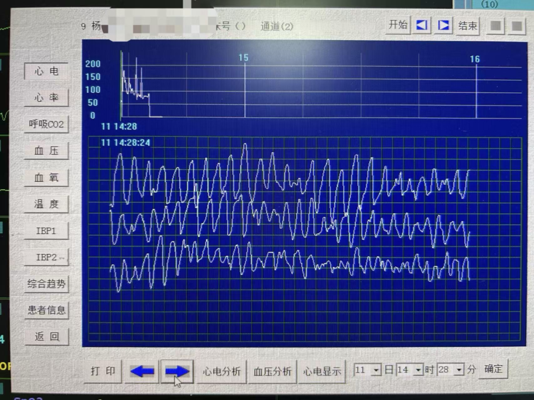 當(dāng)日14時(shí)28分,心血管內(nèi)科責(zé)任護(hù)士李文秀如往常一樣,專注地監(jiān)測(cè)著遙測(cè)心電監(jiān)護(hù)儀。突然,一陣急促而不規(guī)則的警報(bào)聲響起——那是9床楊婆婆的遙測(cè)心電監(jiān)護(hù)儀發(fā)出的警報(bào)。李文秀瞬間將目光鎖定屏幕,只見原本規(guī)律的心電波形已變?yōu)殡s亂無章的“蚯蚓狀”,這是最危險(xiǎn)的心律失常之一:心室顫動(dòng)(室顫),意味著心臟已失去有效泵血功能,患者生命正以秒為單位流逝。