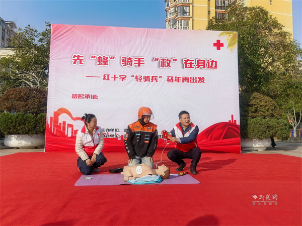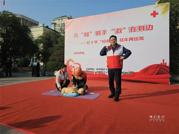 荊楚網(wǎng)(湖北日報網(wǎng))訊(通訊員 王瑜婷)1月15日,武昌區(qū)南湖街道寶安社區(qū)開展“先‘蜂’騎手,‘救’在身邊——紅十字‘輕騎兵’馬年再出發(fā)”主題活動。市、區(qū)紅十字會及南湖街道相關(guān)負(fù)責(zé)人,外賣、快遞小哥代表齊聚現(xiàn)場,共同見證這支由新就業(yè)群體組成的紅十字“輕騎兵”志愿服務(wù)隊(duì)再啟新程。