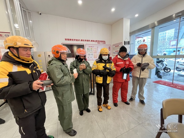 武昌區(qū)總工會(huì)維權(quán)服務(wù)部負(fù)責(zé)人夏巨波與街道工會(huì)工作人員一邊分發(fā)慰問(wèn)物資,一邊與大家親切交談:“雪天路滑,騎車千萬(wàn)要慢行,安全第一?!薄绑A站里備了熱水和微波爐,累了隨時(shí)進(jìn)來(lái)歇腳,別凍著自己?!?/p>
