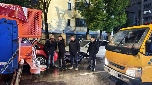 街道嚴(yán)格落實(shí)24小時應(yīng)急值班制度,一方面組織執(zhí)法隊員加強(qiáng)路面動態(tài)巡查,及時排查處置積雪壓枝、招牌松動等安全隱患;另一方面,環(huán)衛(wèi)隊伍持續(xù)開展夜間撒鹽防凍和巡查清理作業(yè),防止道路夜間結(jié)冰,確保次日清晨通行安全。