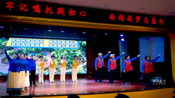 現(xiàn)場(chǎng)藝術(shù)節(jié)目精彩紛呈。情景劇《南湖暖陽(yáng)》再現(xiàn)鄰里互助溫情,情景劇《華錦“民”星,微光閃亮》展現(xiàn)社區(qū)“民星”熱心服務(wù),詩(shī)朗誦《以志愿之名書青春華章》寓意志愿服務(wù)遍地開花。這些節(jié)目讓感動(dòng)在藝術(shù)共鳴中升華。