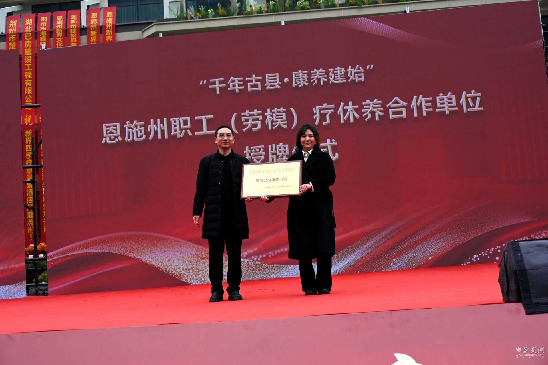 活動(dòng)現(xiàn)場(chǎng),恩施州總工會(huì)為溫泉康養(yǎng)小鎮(zhèn)“恩施州職工(勞模)療休養(yǎng)合作單位”授牌??h總工會(huì)2026年勞模(職工)療休養(yǎng),是貫徹落實(shí)省總工會(huì)“關(guān)愛勞模、服務(wù)職工”暖心工程的療休養(yǎng)之旅,也是共賞冬韻風(fēng)光,吃一碗刨湯,泡一池溫泉的深度體驗(yàn),共赴一場(chǎng)心靈治愈之約,在料峭春寒中感受溫暖。
