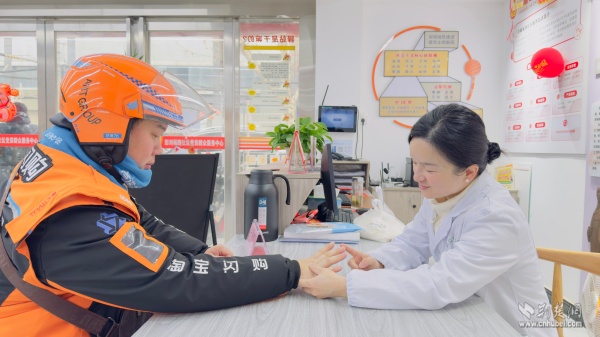 溫暖派送覆蓋多元群體。在戶外勞動者驛站,環(huán)衛(wèi)工人、快遞外賣騎手從志愿者手中接過熱粥;社區(qū)還鏈接武漢市第三醫(yī)院資源,為戶外工作者提供健康咨詢。幾位外賣騎手主動化身“公益騎手”,與黨員志愿者一同將暖心粥品送至“鶴耋安”高齡獨居老人家中。黨員志愿者還走訪了周邊商戶、殘疾人家庭及退役軍人家屬,并在社區(qū)設點邀請居民共享溫情。一碗粥,沿著黨員和志愿者的溫暖足跡,流入社區(qū)每個角落。