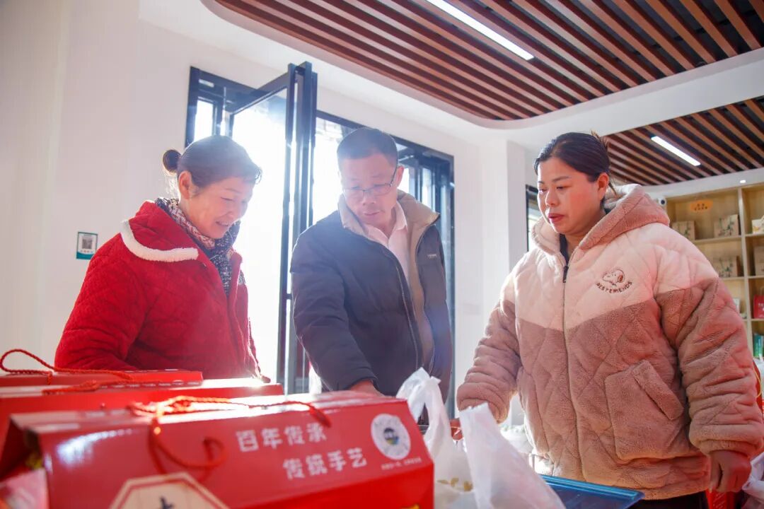 除了優(yōu)質選品,在運營模式上,基地還采用線上線下雙輪驅動。線上以“祁家灣優(yōu)品”抖音直播間為主要陣地,組建了由5名村“兩委”干部構成的直播團隊,定期開展直播帶貨,直播場景覆蓋生產現(xiàn)場等多種實地環(huán)境。線下則通過實體展示館進行產品體驗、零售以及面向企業(yè)與社區(qū)的團購批發(fā)業(yè)務,形成銷售閉環(huán)。