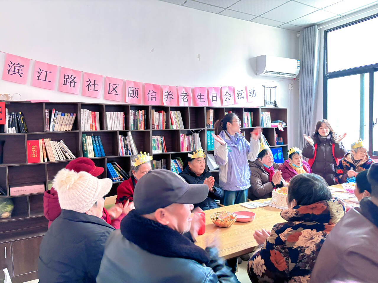 濱江路社區(qū)的活動(dòng)以“情暖冬日 愛(ài)在頤信”為主題,活動(dòng)現(xiàn)場(chǎng)布置雅致,粉色主題橫幅醒目溫馨,四位壽星頭戴金燦燦的生日帽,圍坐在一起,眼底滿是期待,臉上漾著幸福的笑意。