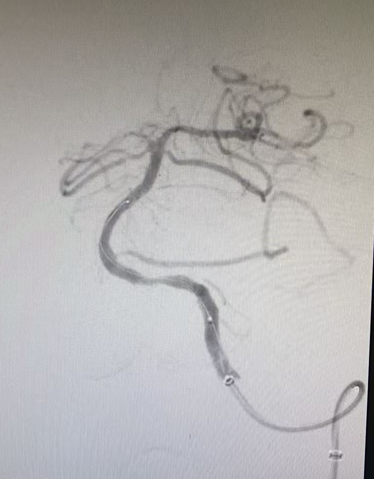 與家屬充分溝通并取得同意后,晚上7點42分,患者被推入介入手術(shù)室。手術(shù)團(tuán)隊經(jīng)驗豐富,操作精準(zhǔn),晚上7點50分成功建立手術(shù)通路,在DSA影像引導(dǎo)下,微導(dǎo)絲與微導(dǎo)管精準(zhǔn)穿越閉塞血管段。晚上8點07分,堵塞的椎基底動脈被成功開通,從進(jìn)入介入室到血管再通,僅用時25分鐘。
