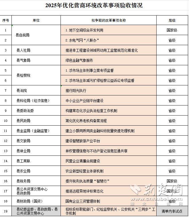 此次宣恩縣納入通報(bào)表揚(yáng)的改革事項(xiàng)涵蓋多個(gè)領(lǐng)域,涵蓋自然資源開發(fā)利用、稅務(wù)執(zhí)法、公共資源交易、勞動(dòng)用工監(jiān)管、氣象金融服務(wù)、檢察監(jiān)督與公益訴訟、司法執(zhí)行、產(chǎn)業(yè)鏈建設(shè)、涉企執(zhí)法、養(yǎng)老機(jī)構(gòu)管理、金融糾紛處理、智慧旅游、林權(quán)與不動(dòng)產(chǎn)信息共享、民營企業(yè)合規(guī)、農(nóng)業(yè)經(jīng)營機(jī)制創(chuàng)新、國資管理及招標(biāo)投標(biāo)協(xié)同機(jī)制等多個(gè)方面。