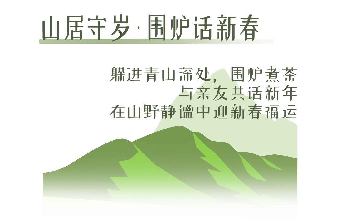 新春期間,開闊草坪上搭建了專屬圍爐區(qū),配上年貨小食、暖茶甜湯,三五好友圍坐取暖,閑話家常;清晨推窗可見薄霧繚繞的山林,午后可沿景區(qū)步道徒步尋梅,傍晚在庭院點燃篝火,看星火與星光交映,沉浸式感受山野新春的靜謐與溫暖。