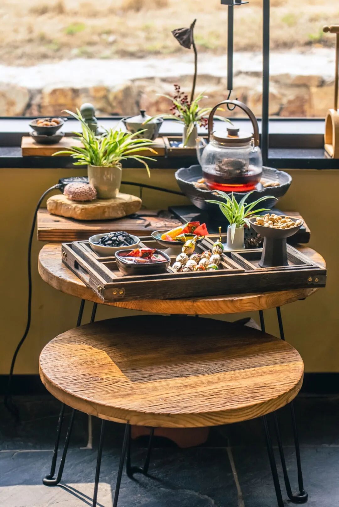 一間房,藏在甘露山文創(chuàng)城里的文藝民宿,32間客房與公共空間錯落分布,設(shè)計上主打“簡約而不簡單”,水泥質(zhì)感墻面搭配原木家具、綠植盆栽,文藝氣息十足。