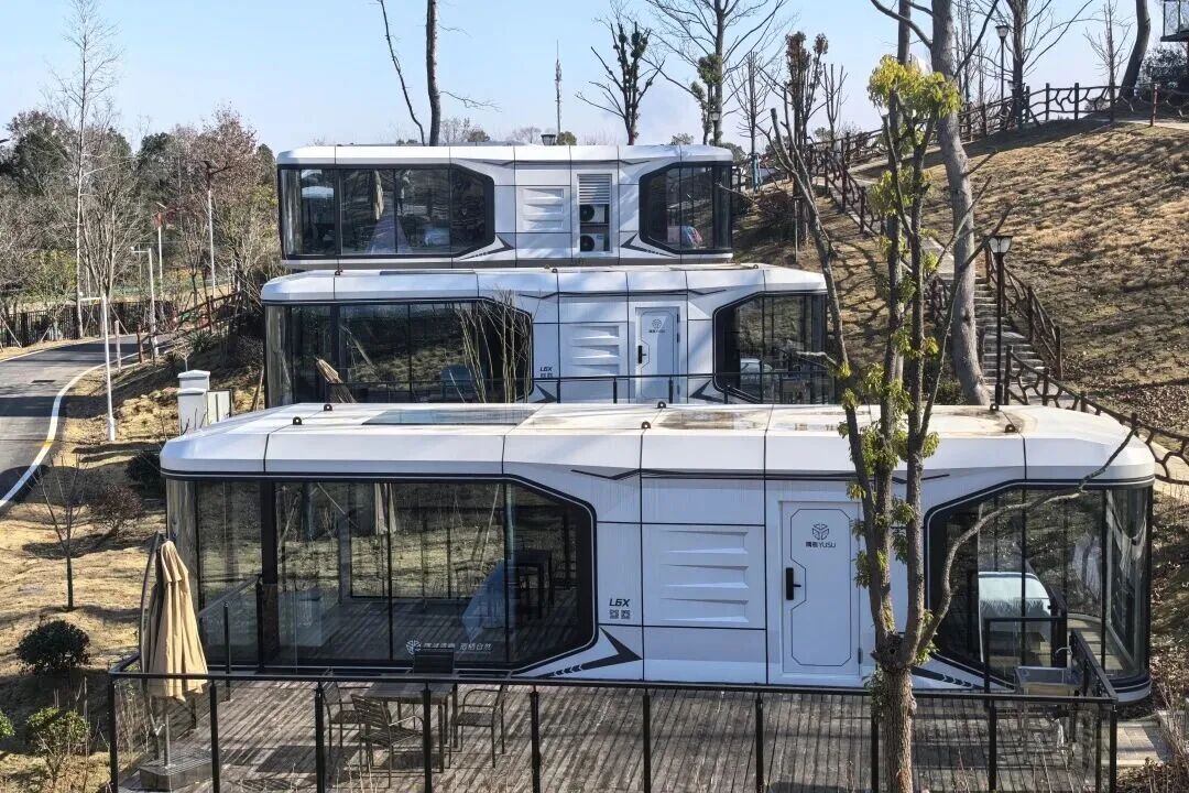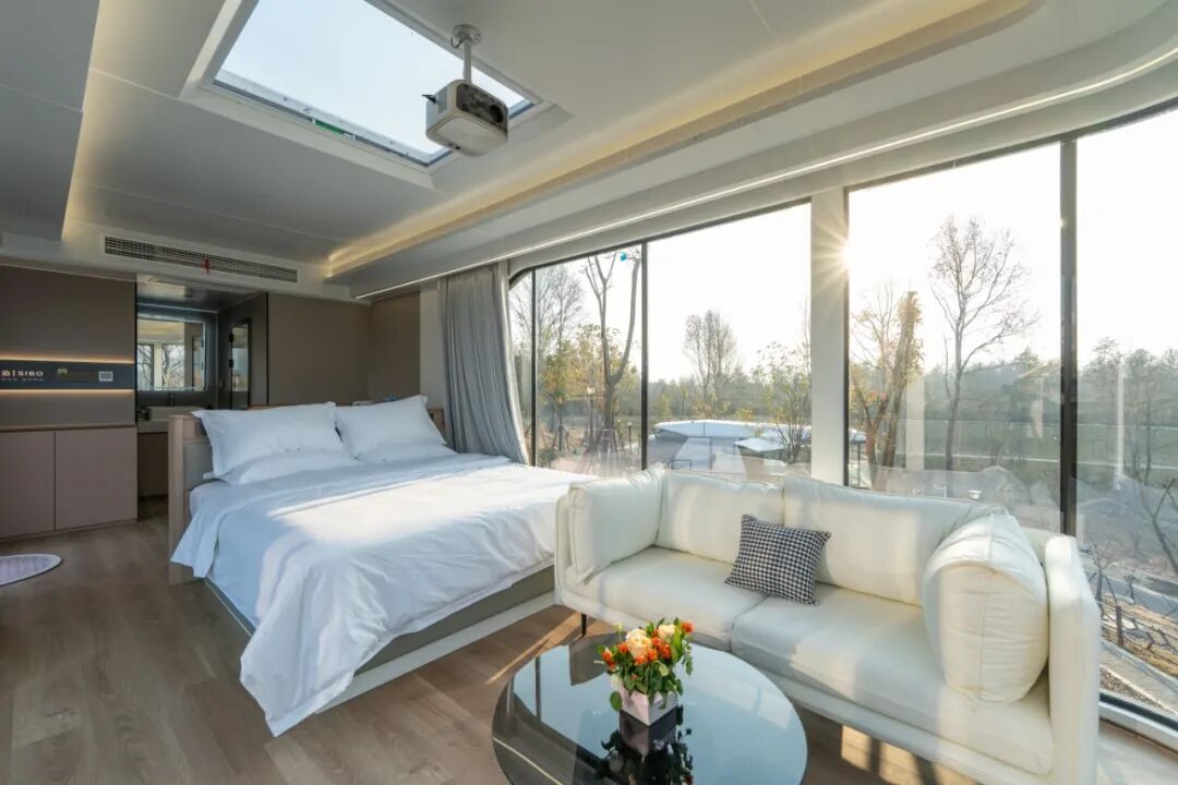 斯泊漫悅民宿,以太空艙為主題的智能浪漫民宿,外觀科幻感十足,270°全景落地窗搭配星空頂設(shè)計,新春夜晚可躺在床上欣賞漫天繁星,氛圍感拉滿。