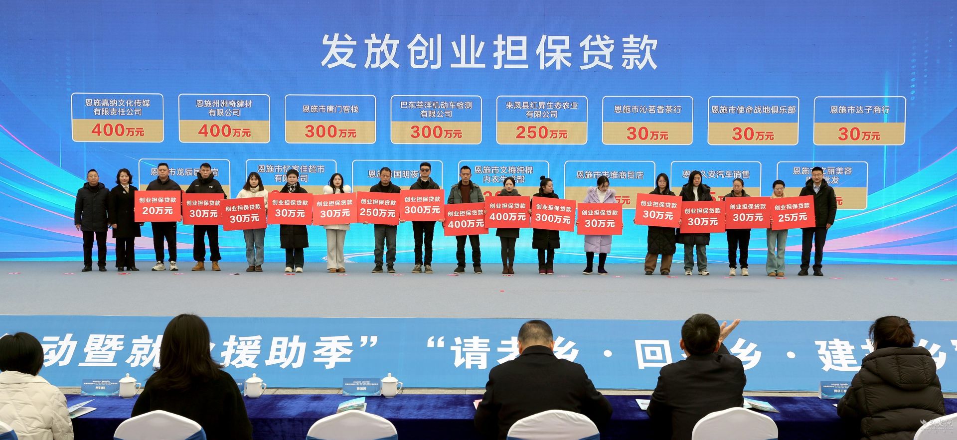 活動現(xiàn)場為“荊楚返鄉(xiāng)創(chuàng)業(yè)特色街區(qū)”“荊楚歸雁項目”授牌并頒獎,為20名“就業(yè)之星”頒獎,并為創(chuàng)業(yè)主體現(xiàn)場發(fā)放創(chuàng)業(yè)擔保貸款。