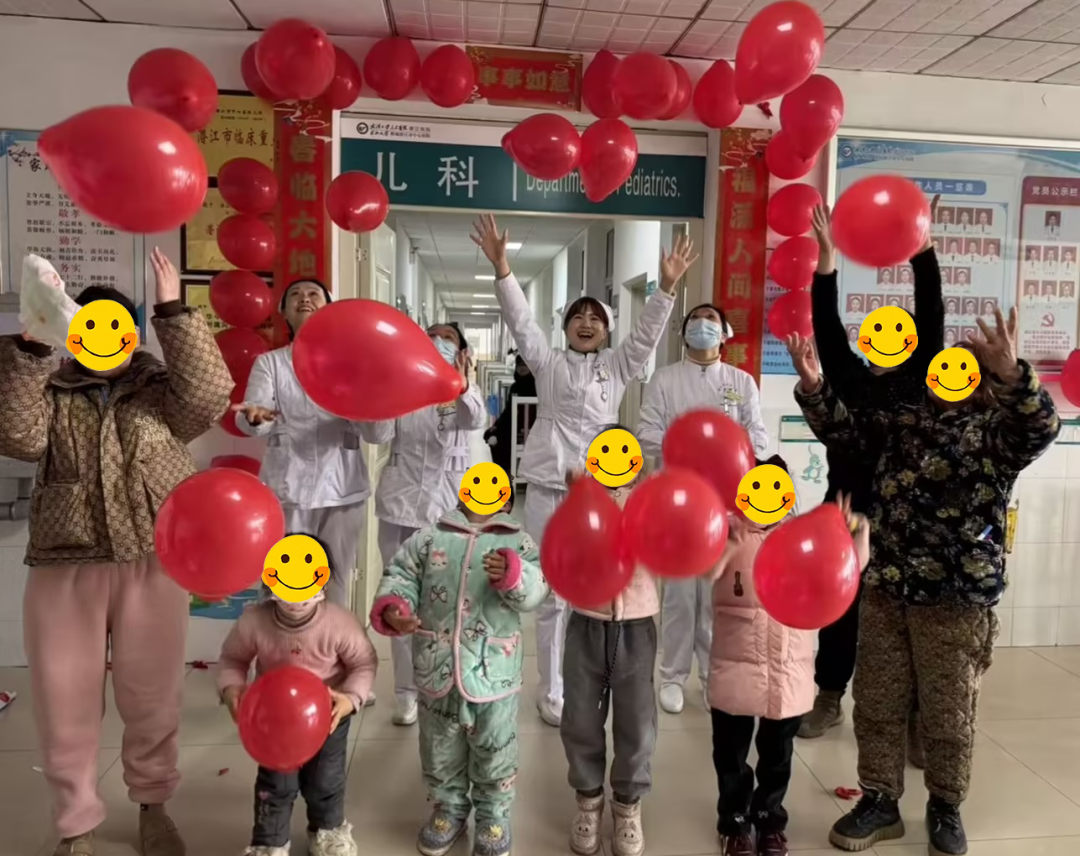 走進(jìn)兒科病區(qū),暖意融融的“中國紅”撲面而來:走廊上空懸掛著成串紅色氣球,“福”字掛飾、新春對聯(lián)點綴其間,原本嚴(yán)肅的診療環(huán)境被濃濃的年味包裹,醫(yī)護(hù)人員與孩子們一同拋起氣球,清脆的笑聲回蕩在每一個角落。