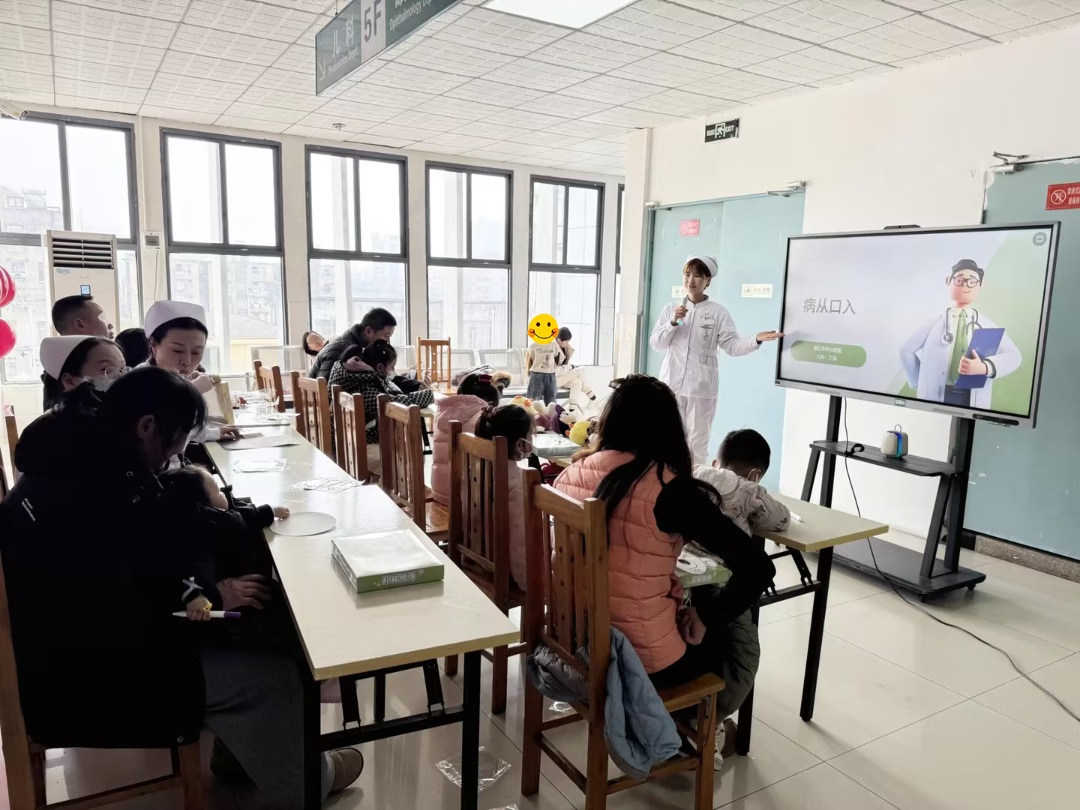 “小朋友們,你們知道為什么飯前便后要洗手嗎?”在健康知識小課堂上,丁潔用動畫PPT打開了孩子們的好奇心,以“病從口入”等貼近生活的話題,向孩子們和家長普及健康飲食、衛(wèi)生習(xí)慣等知識。互動環(huán)節(jié)中,孩子們踴躍舉手、爭相回答,現(xiàn)場氣氛熱烈又歡快?!霸瓉沓蕴嗔闶痴娴臅亲油?,以后我一定聽護(hù)士阿姨的話!”一位小男孩的童言稚語,引得滿堂歡笑。