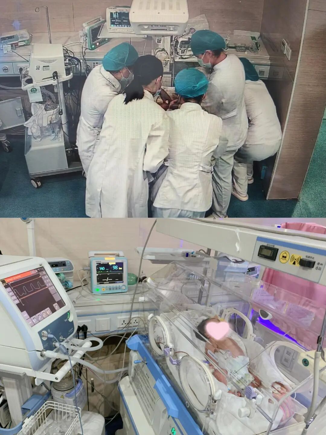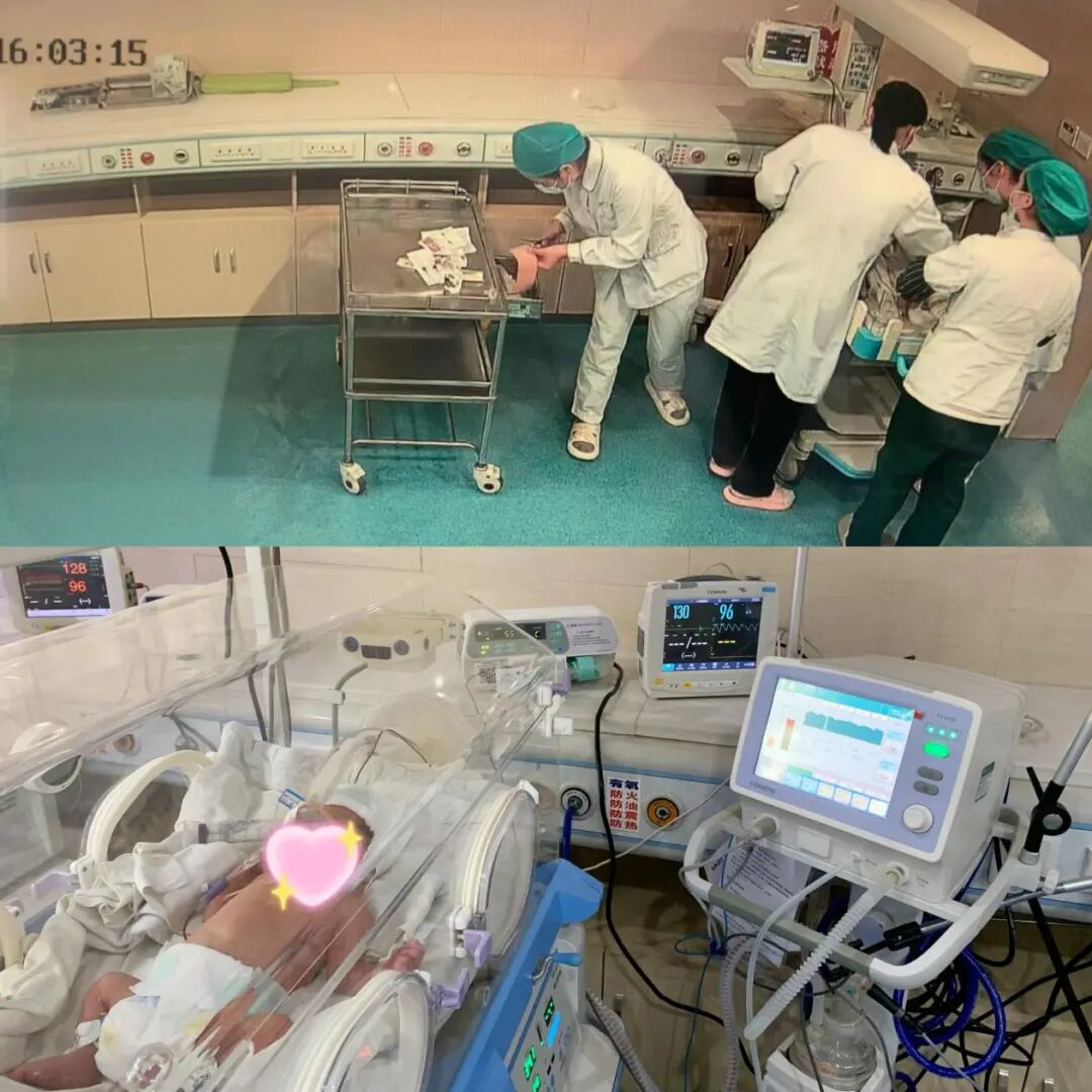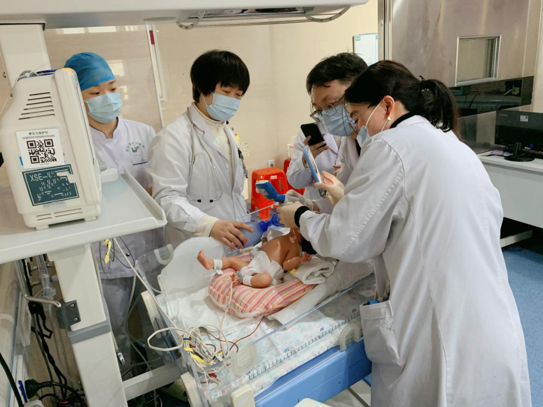 搶救刻不容緩!王婷立即組織蔡佩玲、彭夢萍、徐凱麗、王靖語等值班護(hù)士展開緊急搶救,吸痰、拍背刺激、吸氧、呼吸氣囊輔助通氣、胃腸減壓……一系列操作快而不亂,緊張有序。數(shù)十秒鐘后,一聲響亮的啼哭瞬間劃破緊張的氛圍——孩子哭出來了!膚色逐漸紅潤,慢慢恢復(fù)了自主呼吸。后續(xù)檢查確診的肺炎,在無創(chuàng)呼吸機(jī)支持下逐步得到控制,血氧穩(wěn)步回升。那一刻,所有醫(yī)護(hù)人員才長長舒了一口氣。