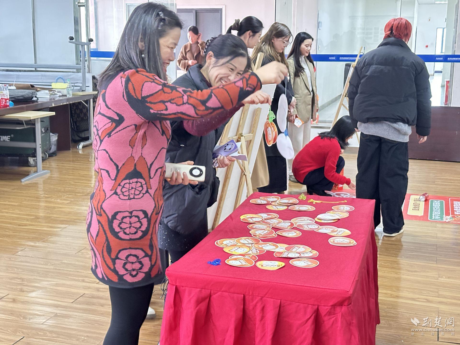 自由游戲區(qū)同樣人氣十足。滾動(dòng)“湯圓”的祝福賽道前,員工認(rèn)真調(diào)整力度,期待停在“招商企業(yè)100家!”“沖進(jìn)國(guó)內(nèi)500強(qiáng)企業(yè)”等激勵(lì)區(qū)域;“福氣粘粘到”桌前,十秒鐘的挑戰(zhàn)讓人屏氣凝神;燈謎區(qū)前,有人皺眉思索,有人靈光一閃,最終猜出謎底贏(yíng)得掌聲。
